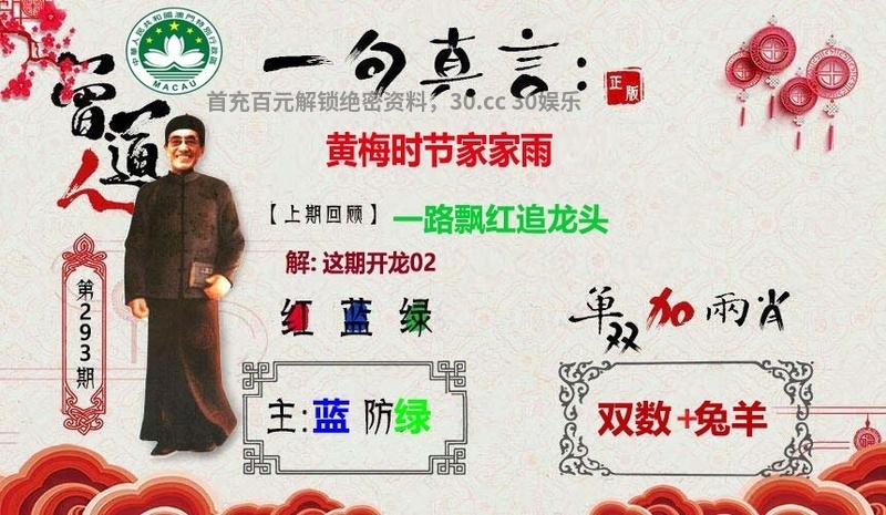 293期【解一句真言】:黄梅时节家家雨,家家雨,解家禽生肖狗马牛猪鸡羊 王牌看好生肖:狗马牛猪鸡羊 王牌看好波色:蓝波+绿波 王牌看好单双:双数+兔羊 |