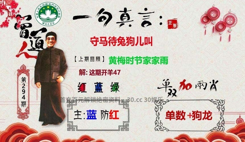 294期【解一句真言】:守马待兔狗儿叫,狗儿叫,解家禽生肖鸡狗猪羊马牛 王牌看好波色:蓝波+红波 |